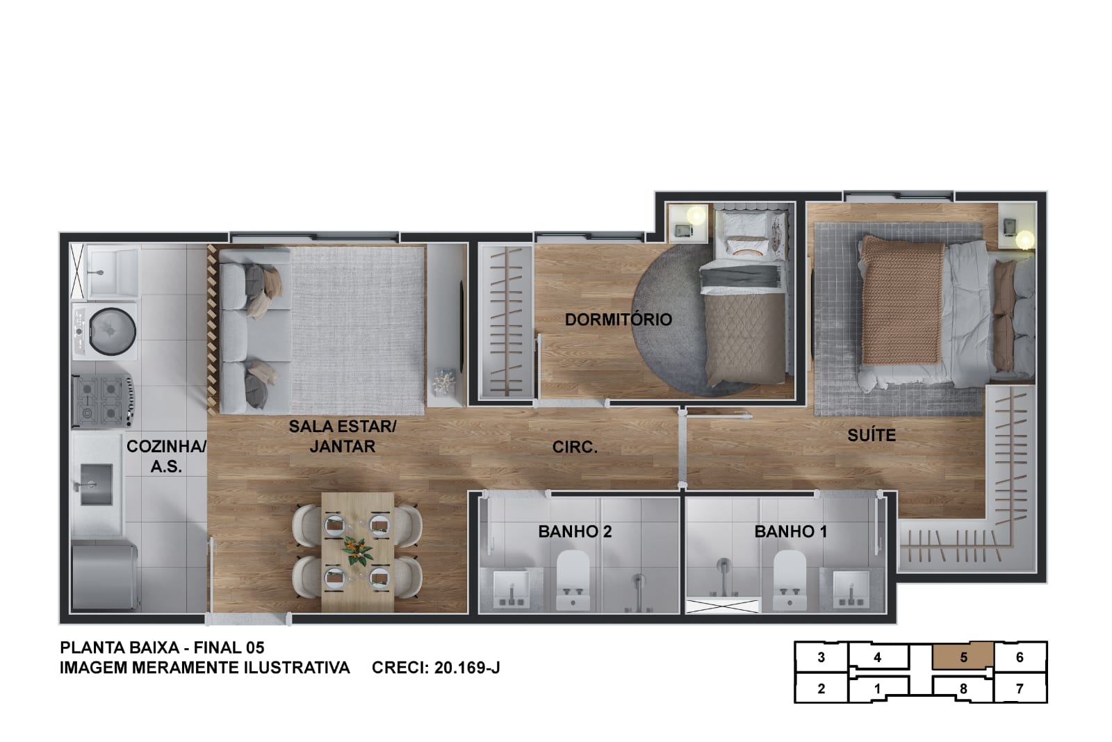 Descubra a beleza e praticidade desses apartamentos de 2 quartos, com ou sem suíte, perfeitos para quem busca conforto e tranquilidade. Com uma área de 43,54m² a 49,98m², cada detalhe foi pensado para o seu bem-estar.